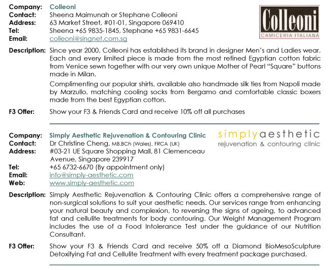 ©2010 Copyright of F3 - Fast Forward Futures Pte Ltd  >>  All rights reserved  >>  Site designed and managed by F3