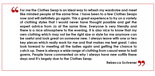 All types of clothing, swimsuits, handbags, shawls, accessories, hair ornaments and shoes are accepted. They don’t need to be designer labels and can be either new or used as long as they are clean and in good condition. Remember, what is one woman’s trash is another’s treasure!